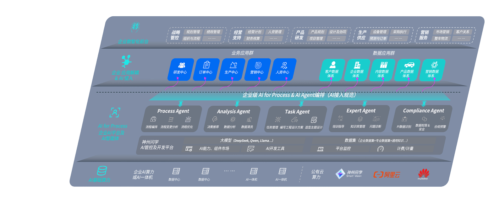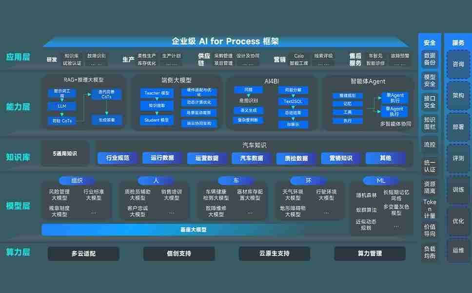 端到端的一站式AI工作空间深度融合了从企业战略规划到日常经营的全流程业务板块,,定向解决车企内部领域多、、、、部门多、、、链条长、、场景碎片化等难题,,,,支持车企快速构建以AI为核心的生产力写作体系,,,实现任务执行与AI能力的无缝集成与交互