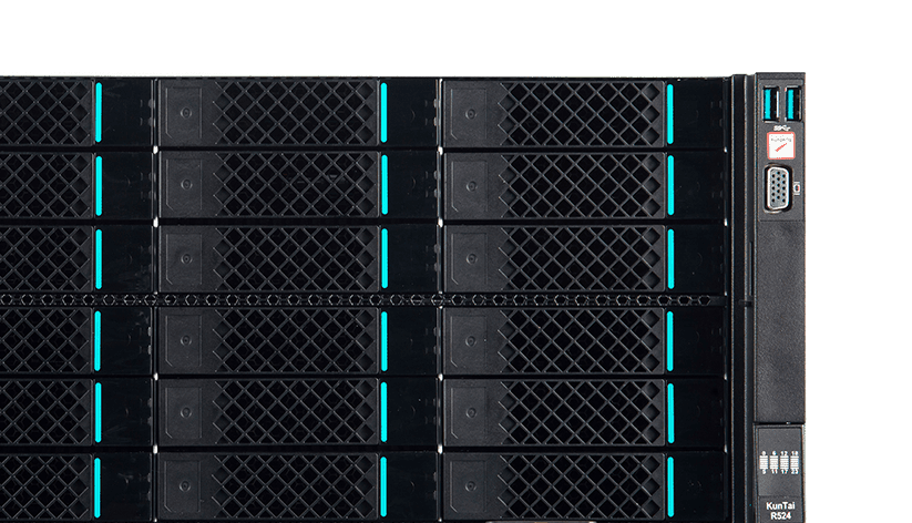 KunTai R524 存储型服务器是逐梦国际数码基于鲲鹏处理器推出的新一代 ARM数据中心服务器。。。主要面向存储业务,,,具有海量存储、、高性能、、低功耗以及易扩展的特点,,,,适合为大数据分析、、、软件定义存 储等应用场景的工作负载进行髙效加速。。